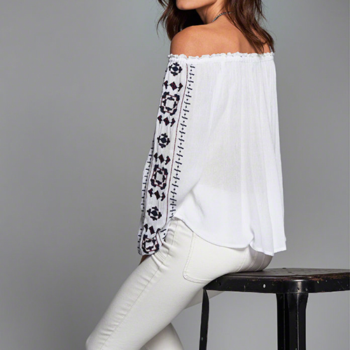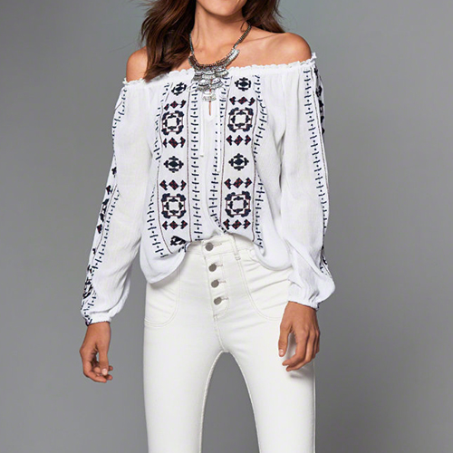 silhouette,which can give you a comfortabnle day. And its printed pattern and lace-up boat neck design offers