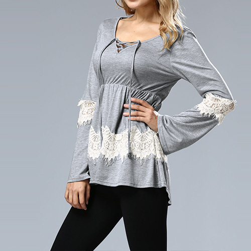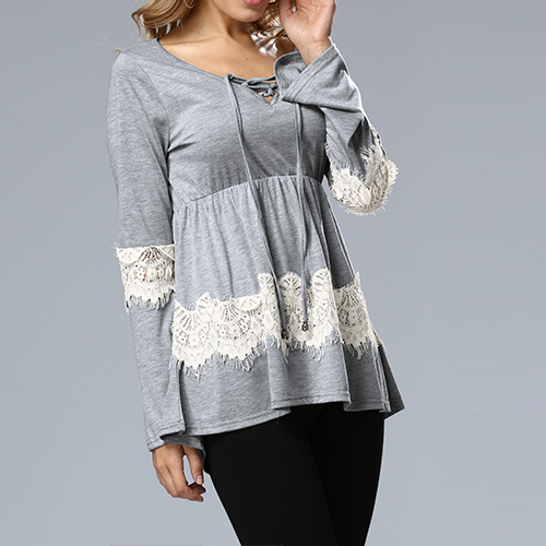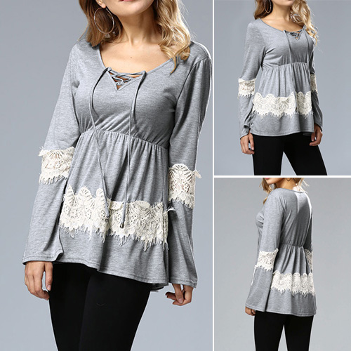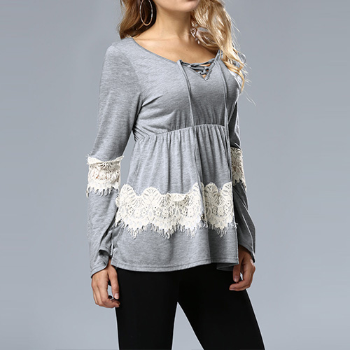 lace-up v-neckline and lace spliced details make this piece chic and appealing,whilst its