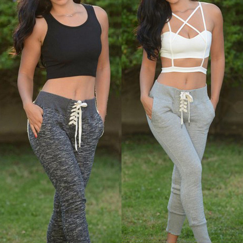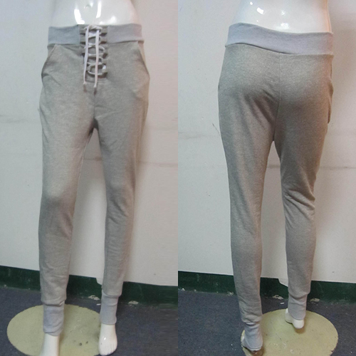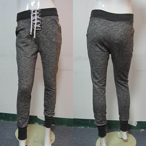A knit joggers pants, feature with the lacing in front and an elasticized drawstring waist,2 pockets on both sides.