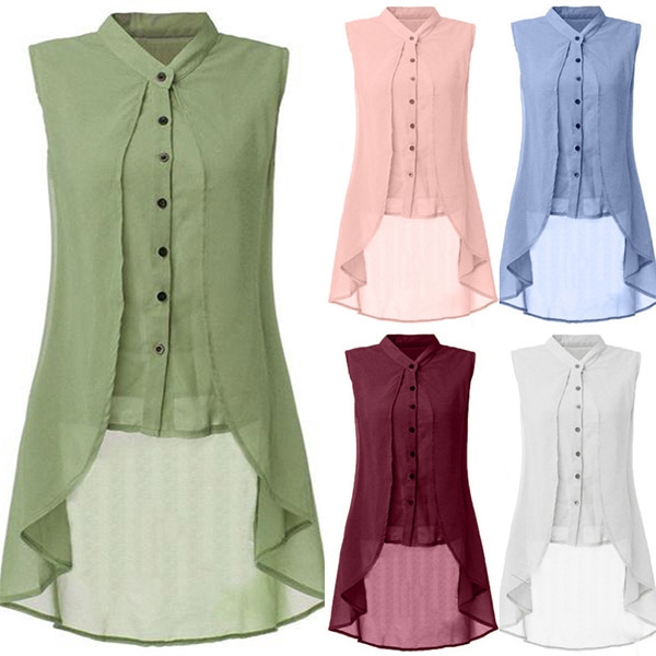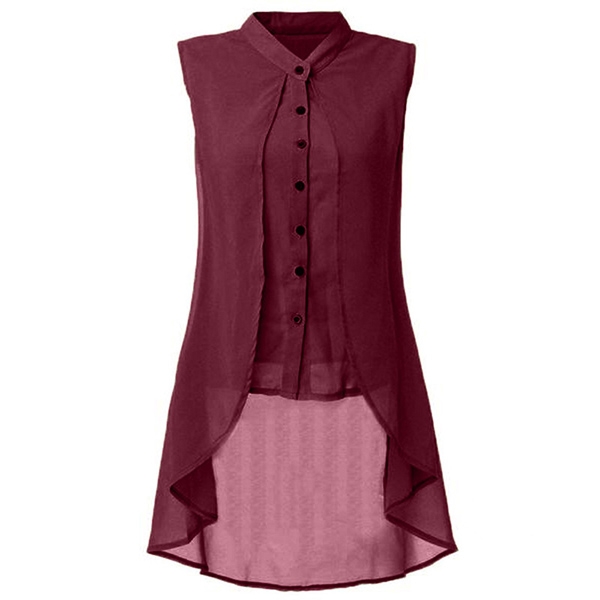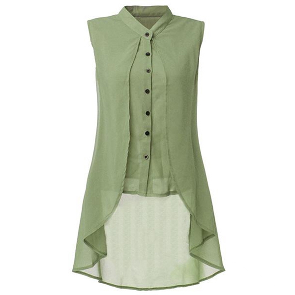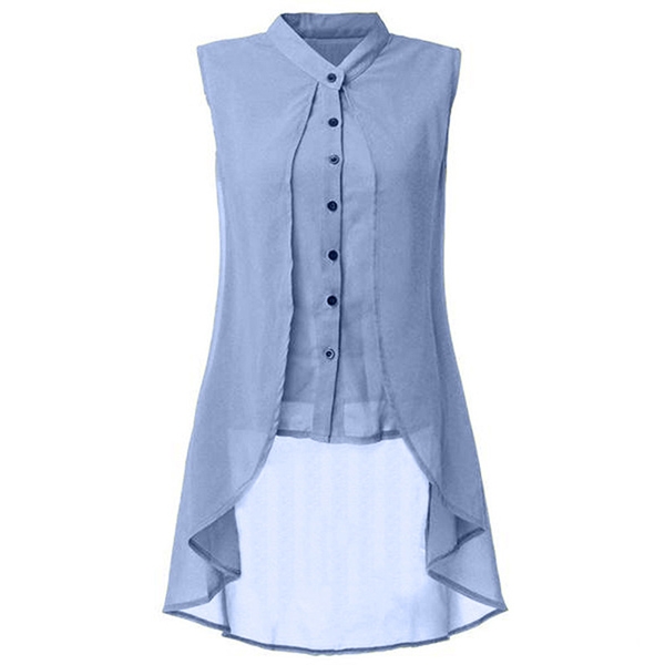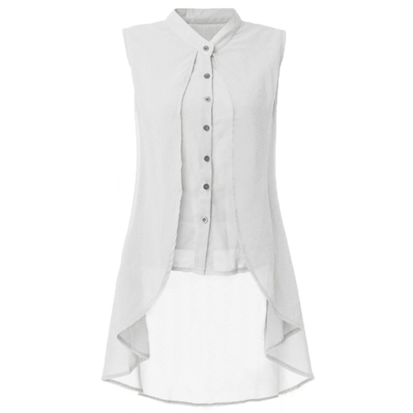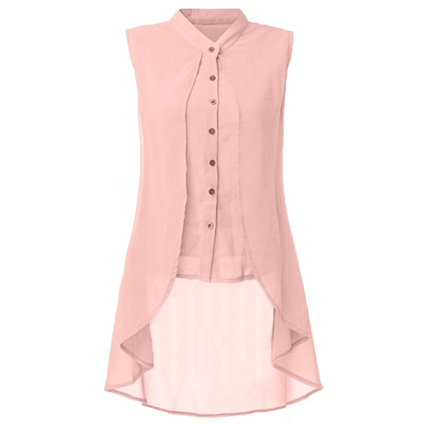 with lapel collar and sleeveless design, simple but fashionable.High-low hemline that can add much charm to you.