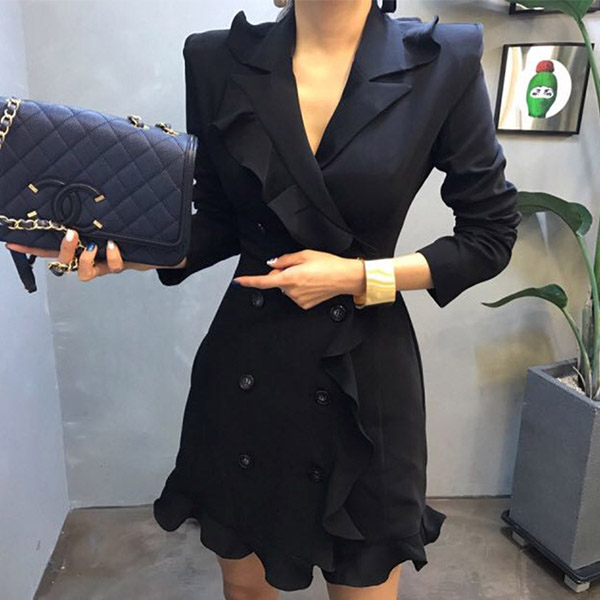 Fashion Lapel Slim Fit Double-breasted Lotus Spliced Chiffon Dress Coat