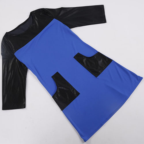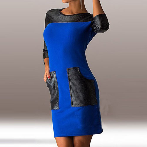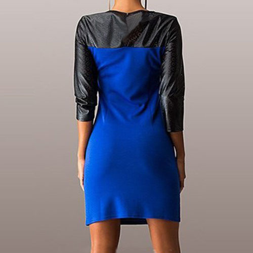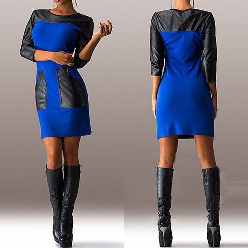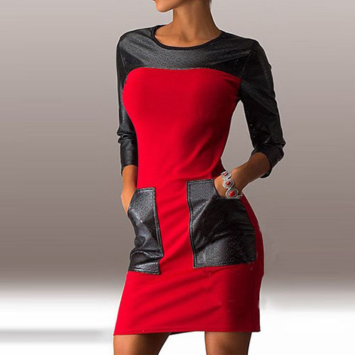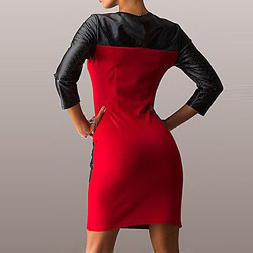 adding round neck, 3/4 sleeve and leather spliced design, this dress perfect describes your beauty