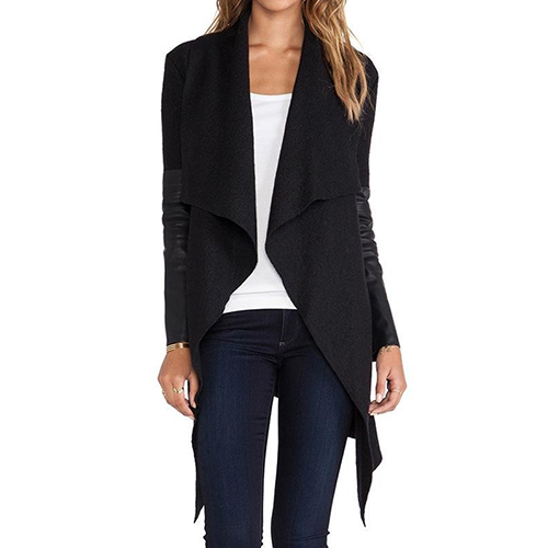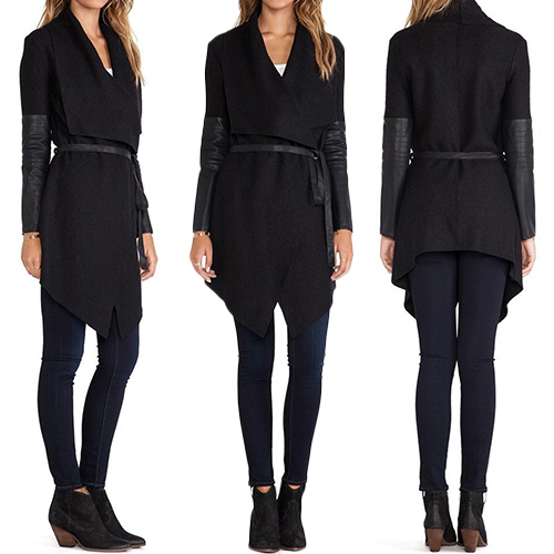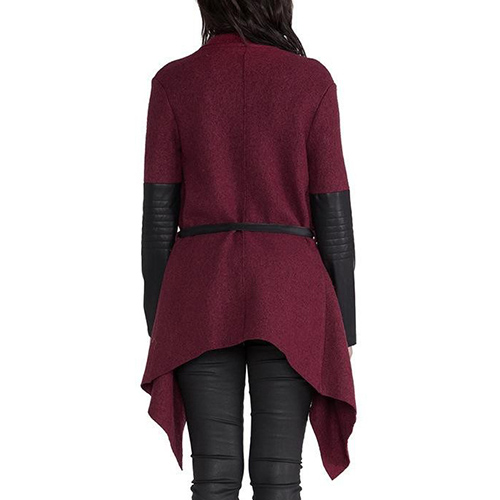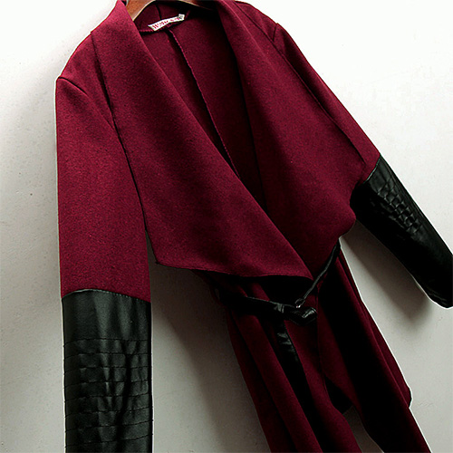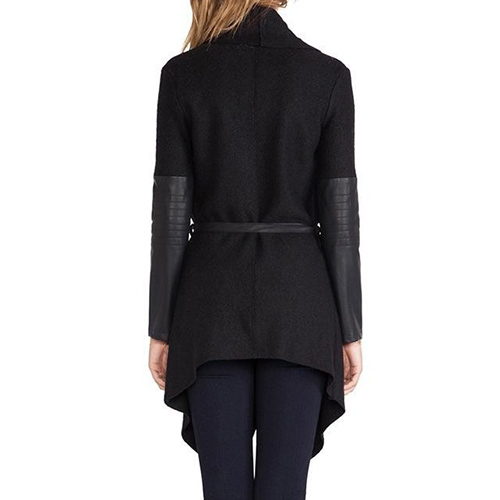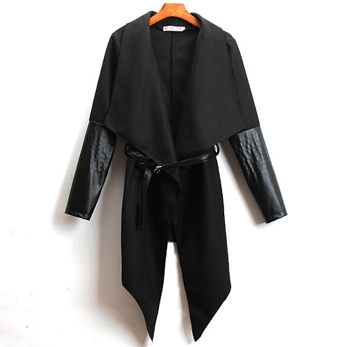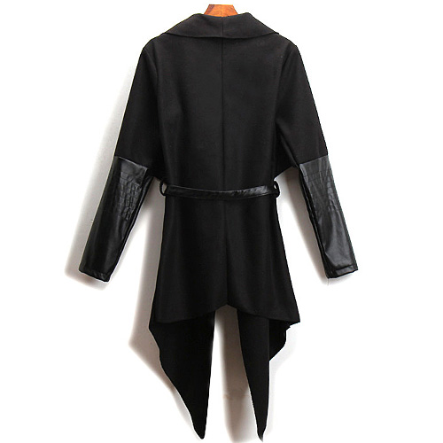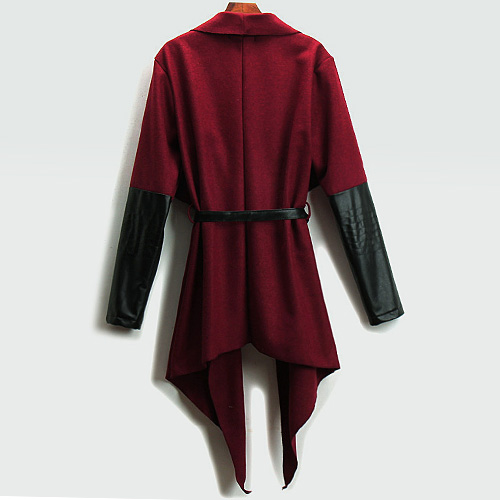 A utter fashion design style, featuring leather spliced, long sleeve and irregular hemline design,