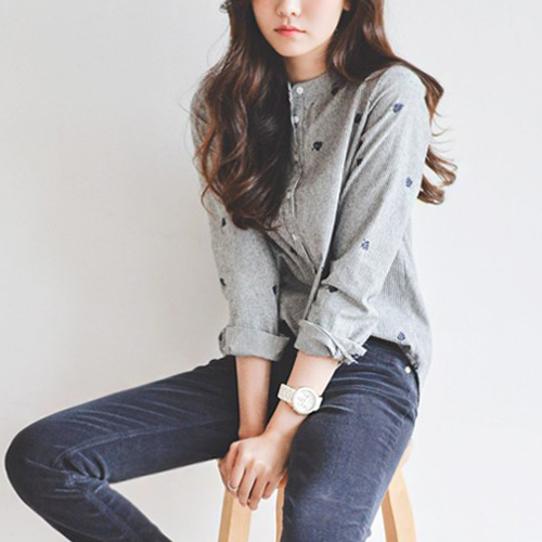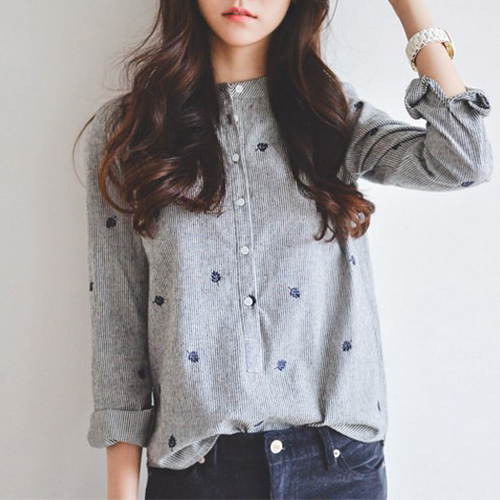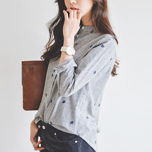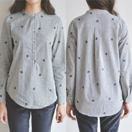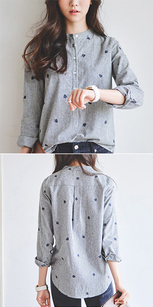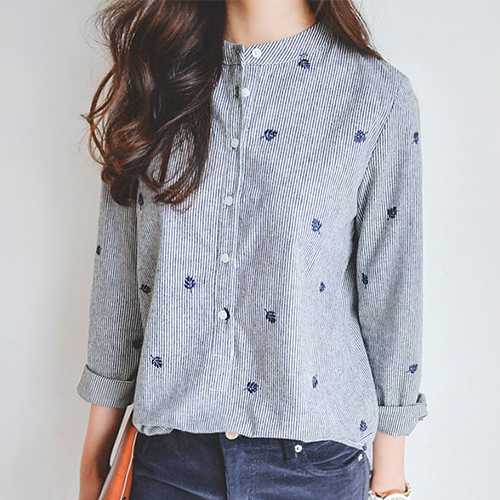 and creative and chic designs. Delicate leaf embroidered technology, with stand collar, long sleeve and
