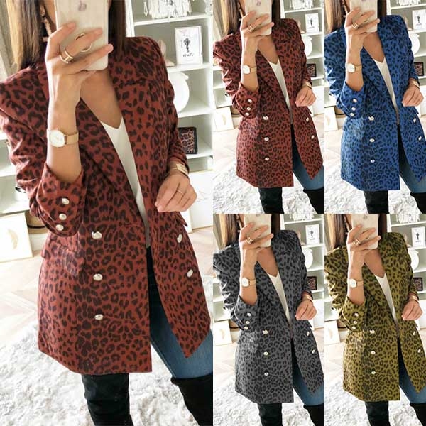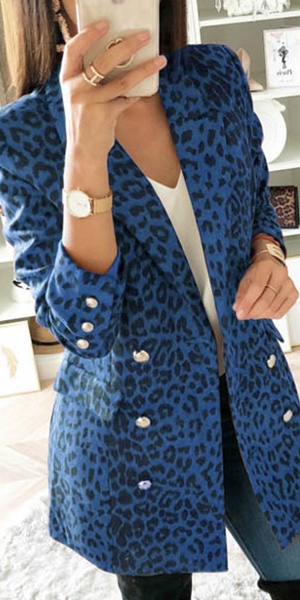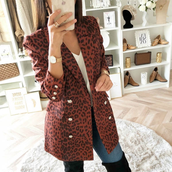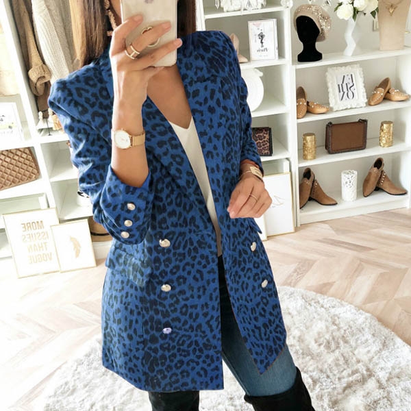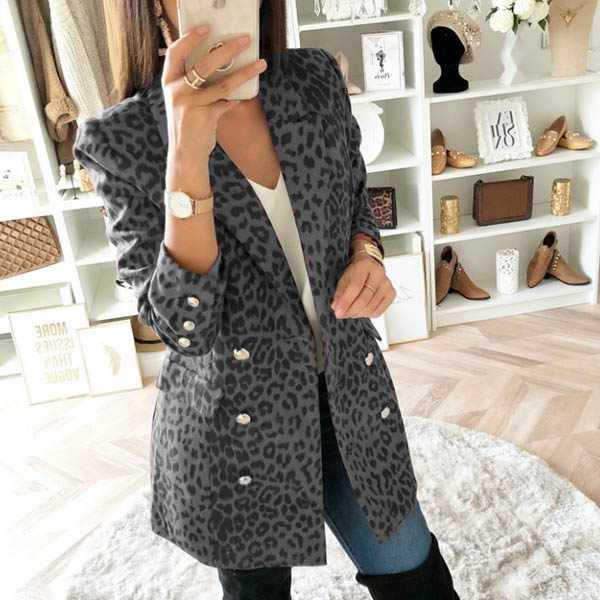 Fashion Leopard Print Long Sleeve Double-breasted Blazer