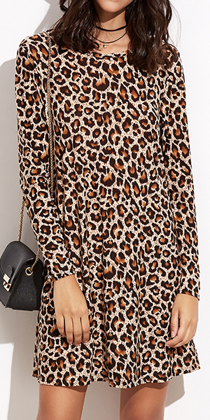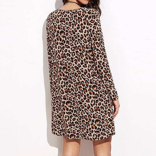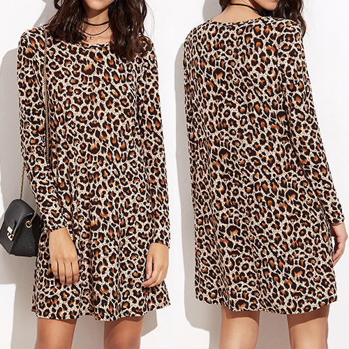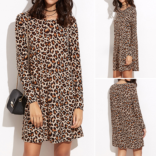 dress is outfitted with leopard patterns and long sleeve round neck design, cool and stylish. You beauty will be showed by this dress.