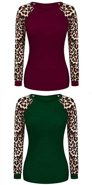 Absolutely eye-catching you are! Chic leopard printed style, complete with round neck and raglan sleeve design;