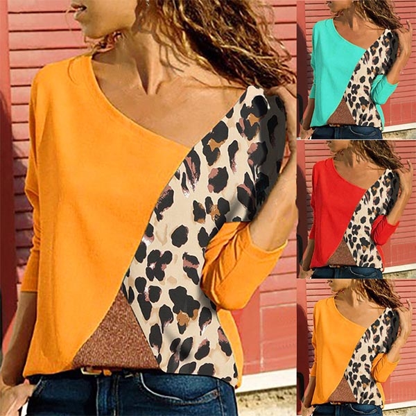 At your first sight,you would be attracted by this chic and unique t-shirt. The contrast color and leopard details
