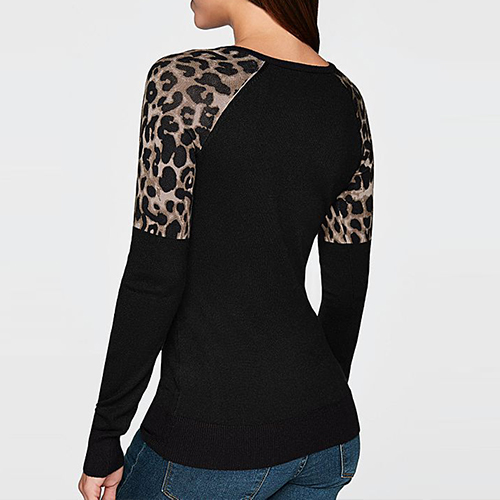 This t-shirt is a perfect epitome of casual,cozy,stylish and all-match. Leopard spliced style,with long