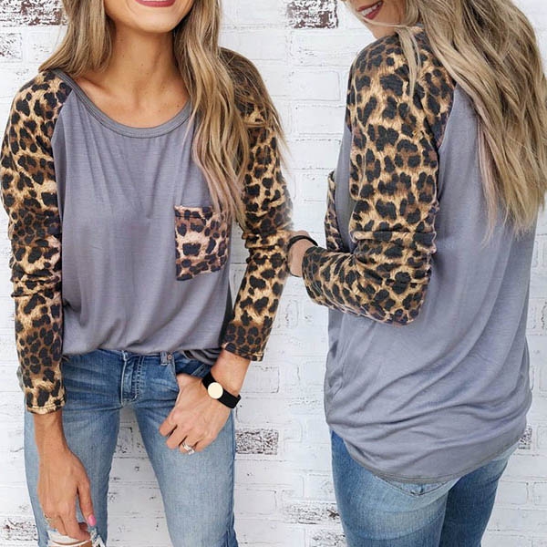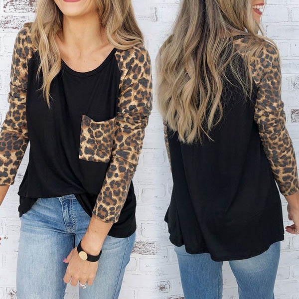 For a simple,casual and relaxed style,you can count on this t-shirt! The leopard spliced and chest