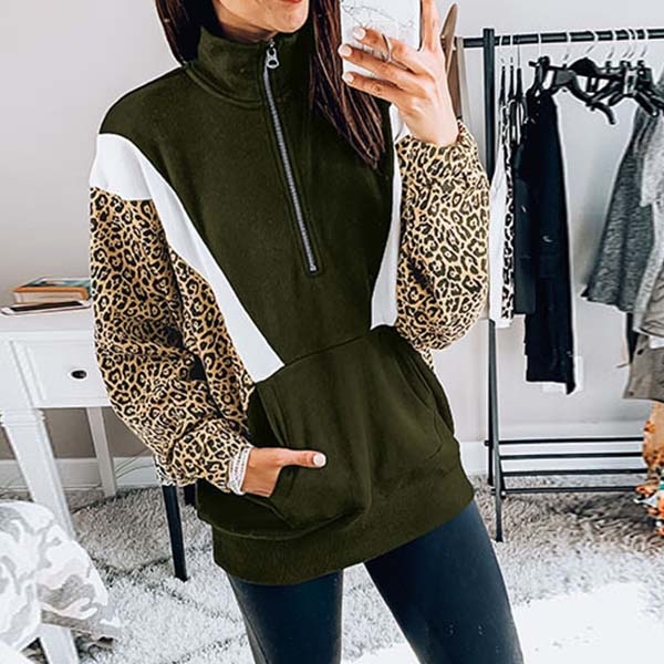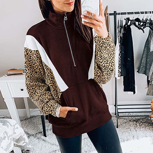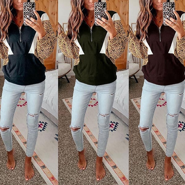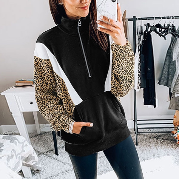 Leopard spliced design will make this piece look more attractive. Finished with long sleeve,