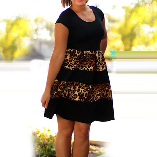 This dress will make you grab more attention no matter when and where! Leopard printed spliced style,designed