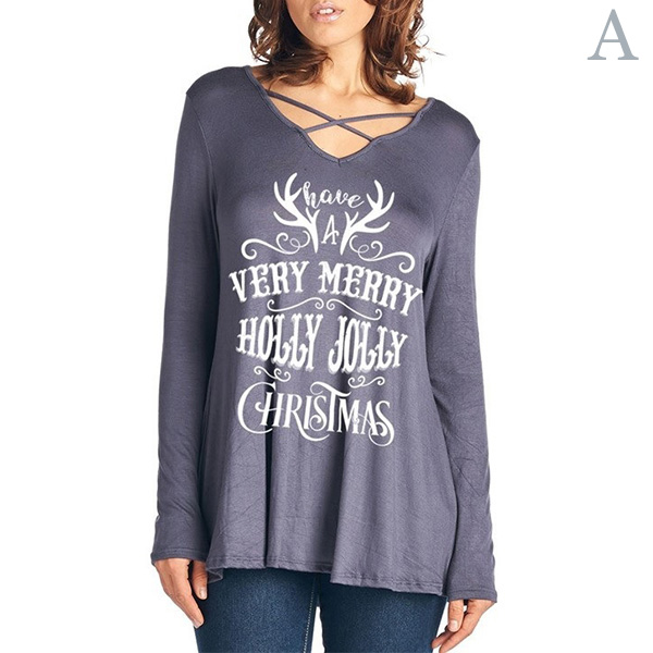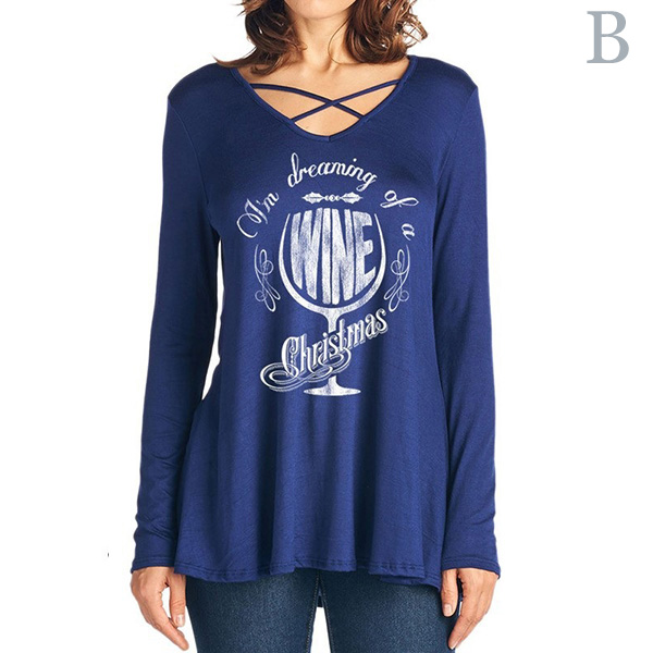 Fashion Letter Printed Long Sleeve Crossover V-neck T-shirt