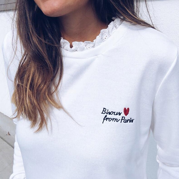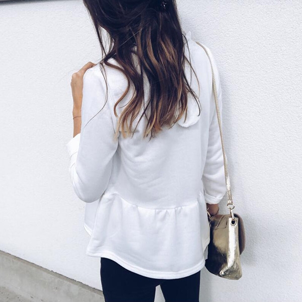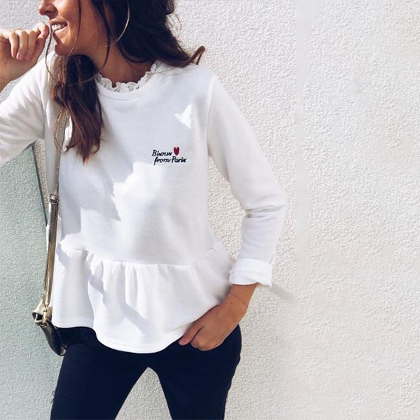 This top comes with a stylish white tone,the letters embroidered details and ruffle design will make this