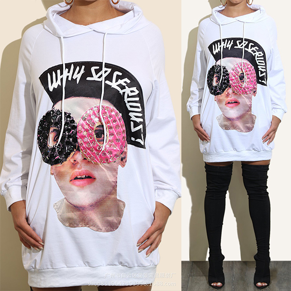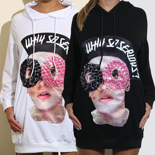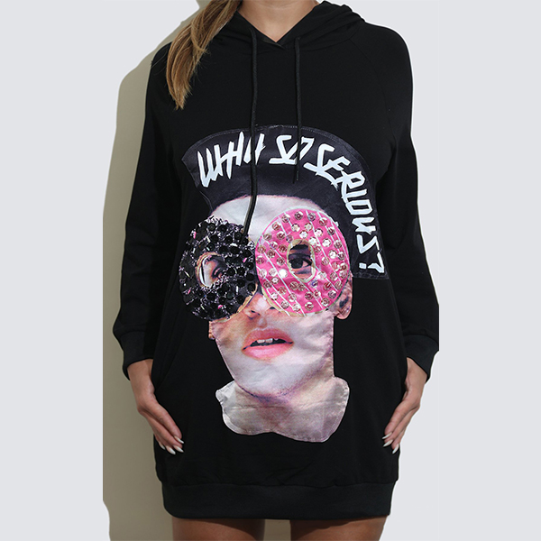 So we suggest you this simple and easy-to-wear sweatshirt dress! Its letters and human head printed pattern