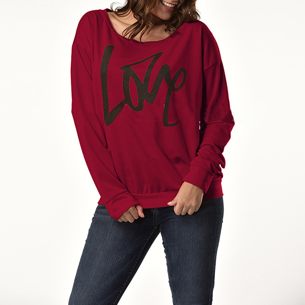 Portray your casual demeanor on the weekends with this sweatshirt.The solid color tone with letters "LOVE" printed
