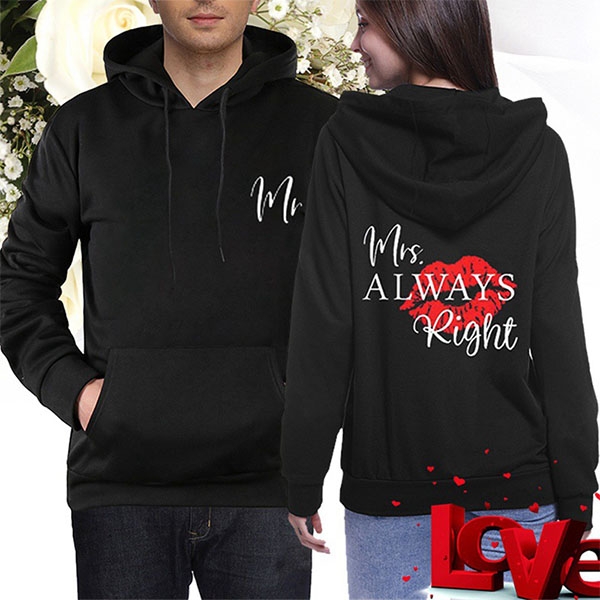 As we all know,people in love is happy.To show off your sweet and romantic love,you may need this couple hoodies. It is finished with letters printed details and hooded design,simple,classic and stylish.When you go out or travel with your lover,you can choose this couple hoodie to draw more attention.