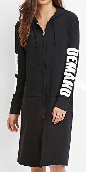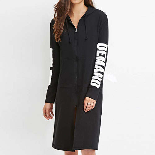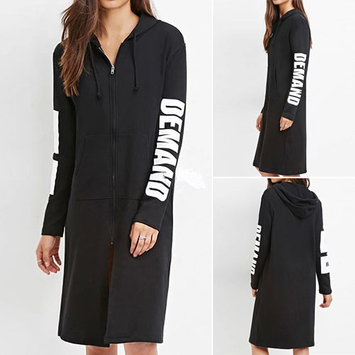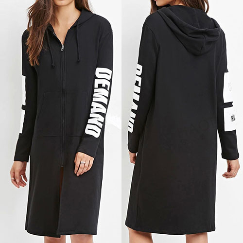 your best choice. Outfitted with letters printed long sleeves,front zipper closure,a loose silhouette