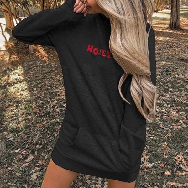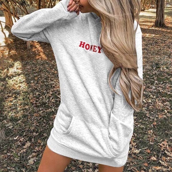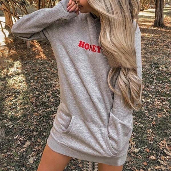 Add a touch of light-hearted personality to your wardrobe with this sweatshirt dress. The letters printed