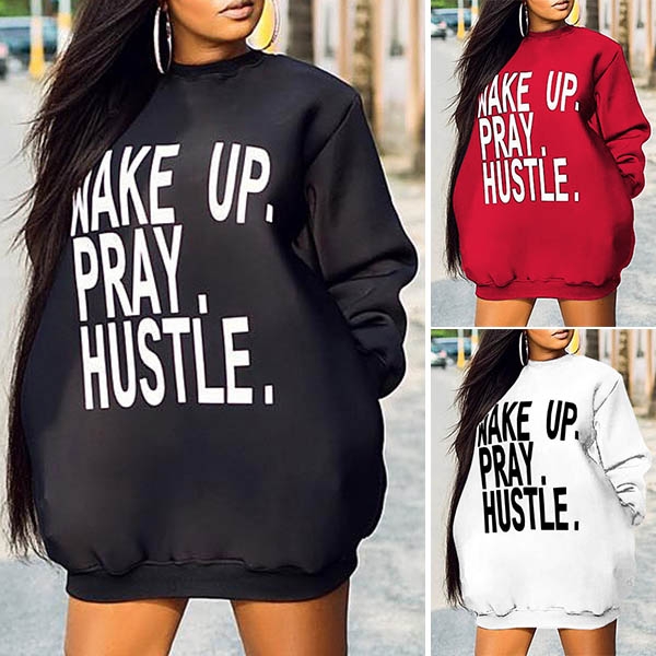 It is easy to achieve for a casual and relaxed style with this sweatshirt dress. Letters printed style,
