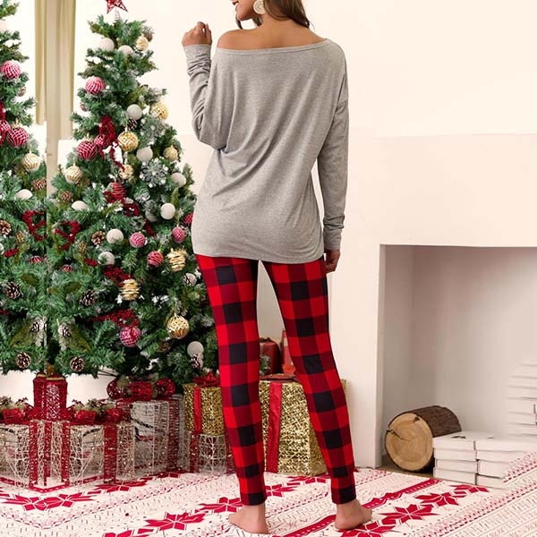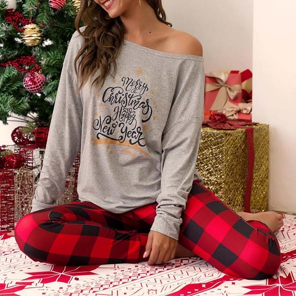 this two-piece set. It consists of a long sleeve letters printed t-shirt and a plaid pants,its soft and