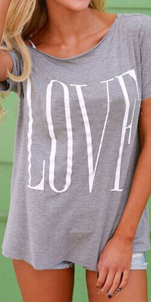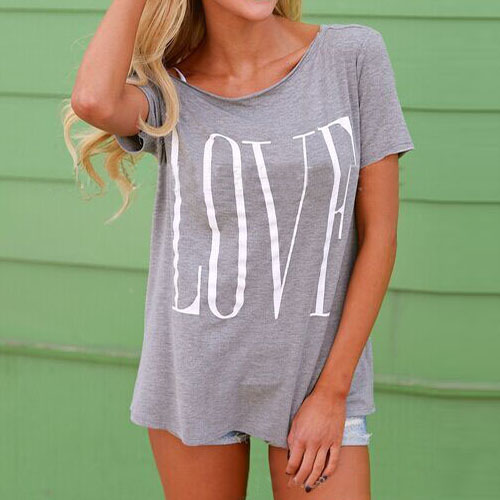 Front with "LOVE" letters print pattern,stylish and chic. Short sleeve and round neck design,classical