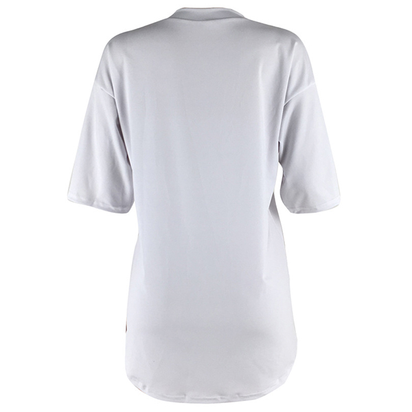 breathable fabric,with short sleeve,round neck and a loose silhouette,this piece of course can give you a cozy,