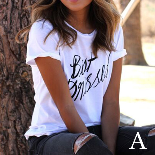 Letters printed style,with short sleeve,round neck and a loose silhouette,simple and stylish.