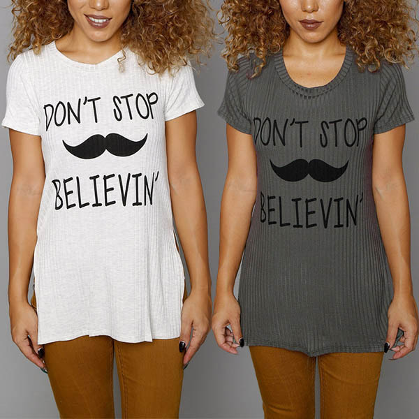 you a comfortable day,while the letters printed and slit hem design make this piece not so simple and traditional.