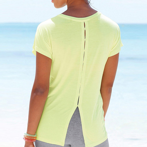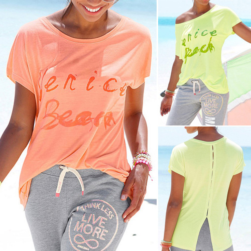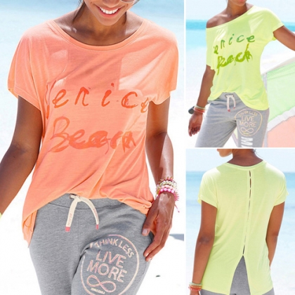 Slip into this t-shirt for a casual and laid-back style. Letters printed style,designed with short sleeve,round neck and a slit hem,