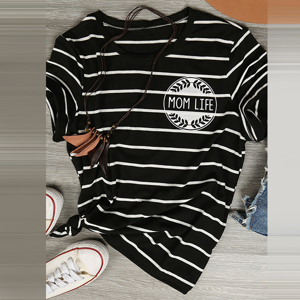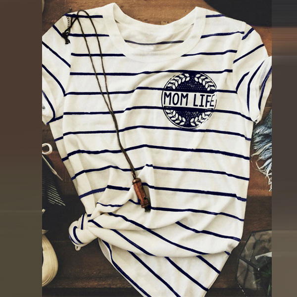 This striped t-shirt is crafted form soft and breathable fabric,accompanied with short sleeve,round neck and letters printed details,