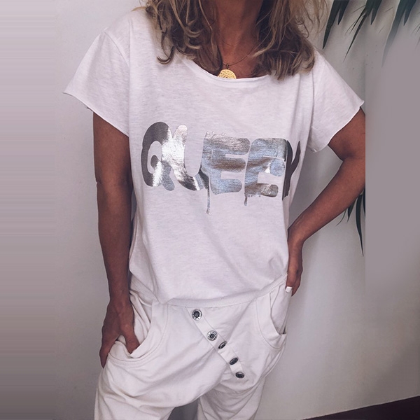 The silver-tone letters printed design is the most attractive design,while its soft and breathable fabric