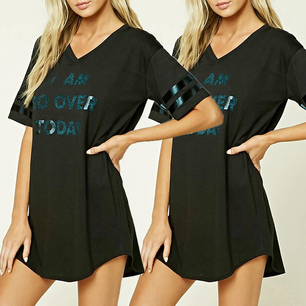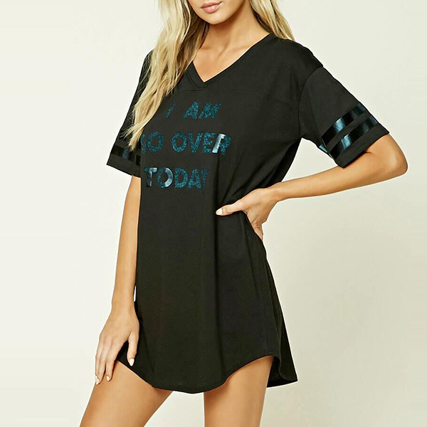 Your casual days call for such a simple and cozy t-shirt dress. Letters printed style,designed with short sleeve,v-neck