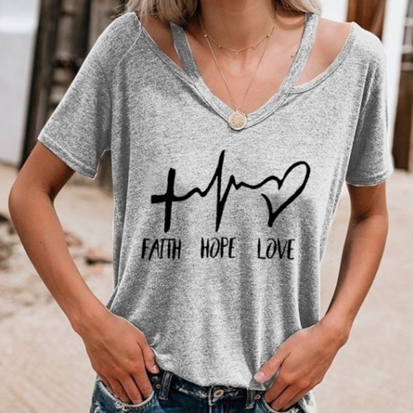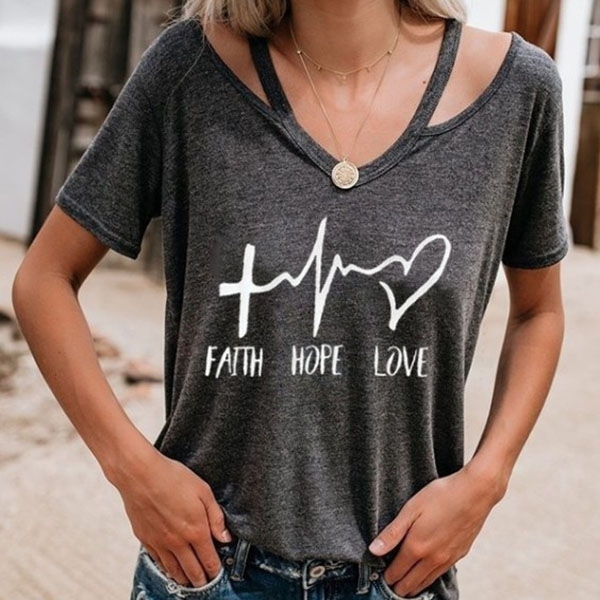 Its letters printed details and unique v-neck design make this piece look so attractive.