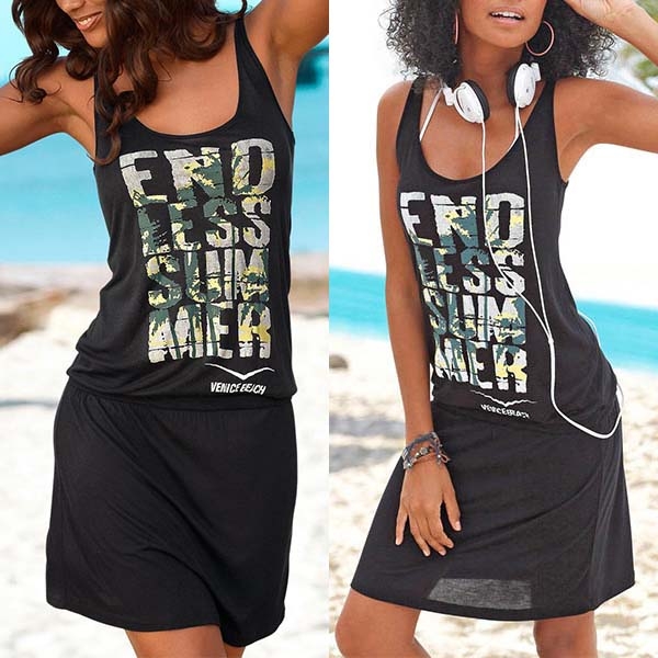 When the summer season hits,you can just slip into this dress to greet it. The letters printed design makes