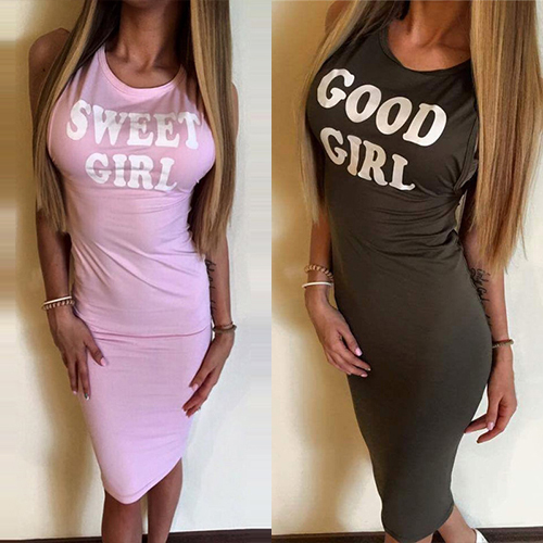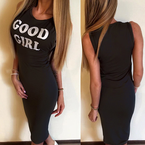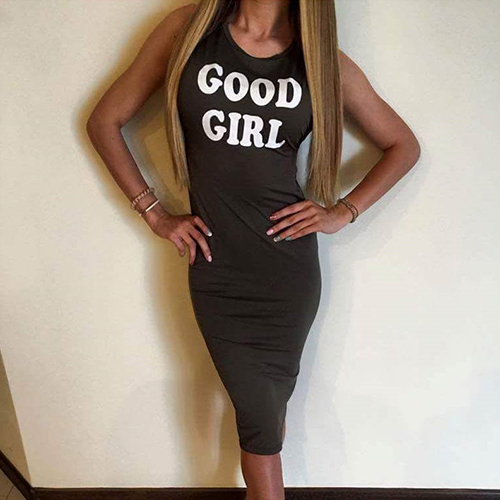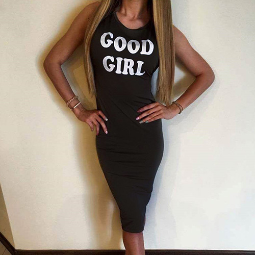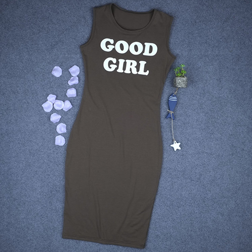 Letters printed style,with sleeveless,round neck and a fit silhouette,this simple dress is deserved to
