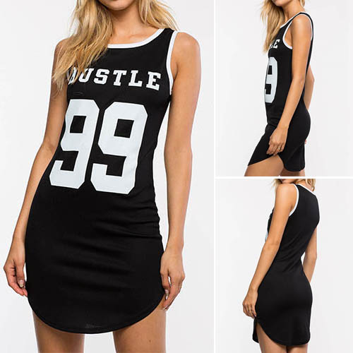 Letters printed style,with sleeveless,round neck and cozy fabric,this tank dress can keep you comfy