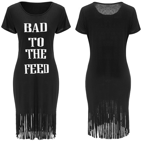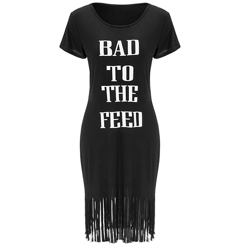 As regard to a chic look,you can rely on this t-shirt dress. Letters printed style,with tassel hem