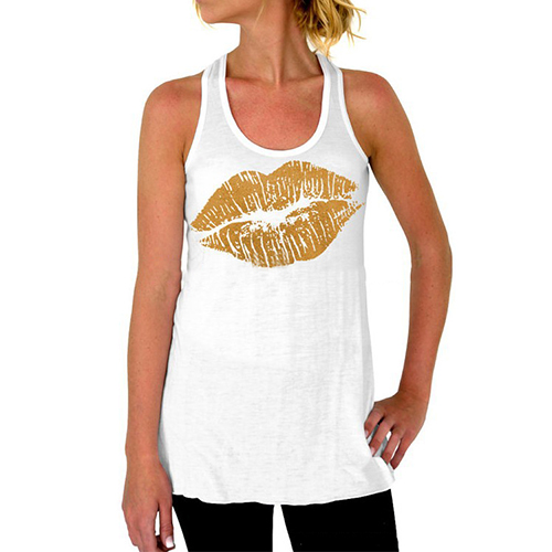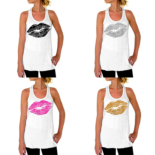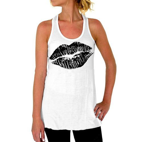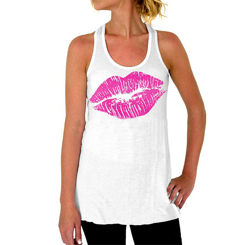 Features chic lips printed pattern,designed with sleeveless,round neck and cozy fabric,this tank tops