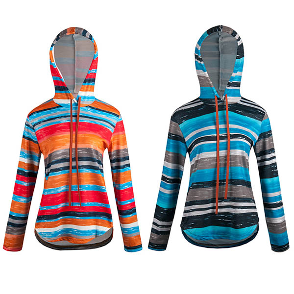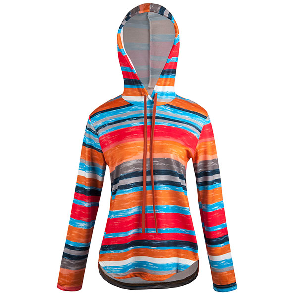Create a casual and fashionable look with this hoodie! The colorful striped design makes this piece