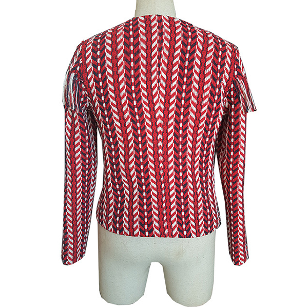 When you feel a little cold,it is wise for you to slip into this coat. Simple in the design structure,but its contrast color jacquard
