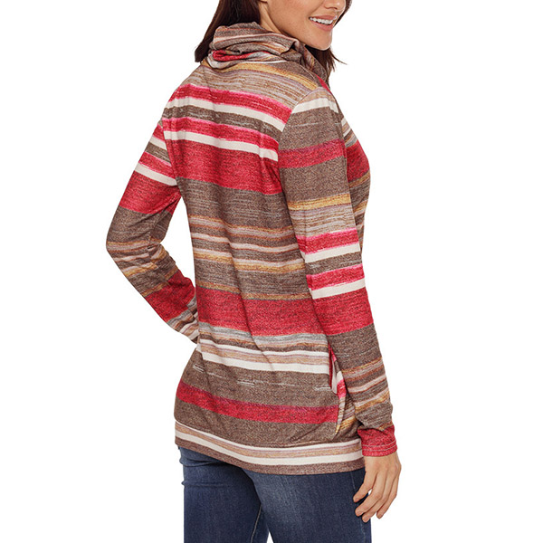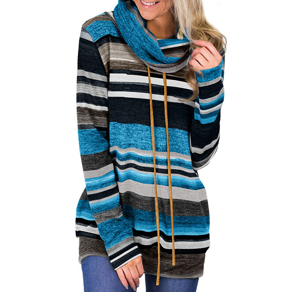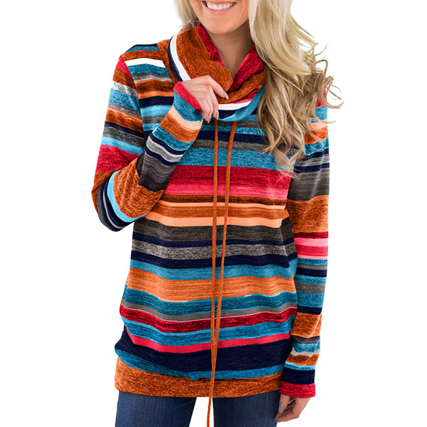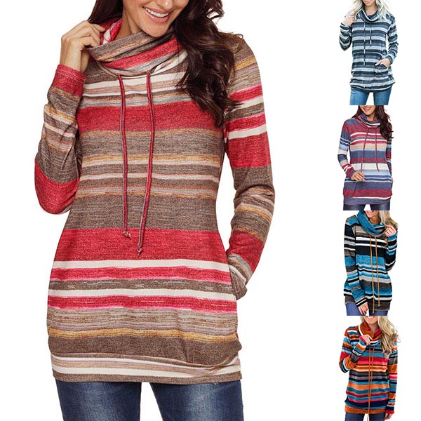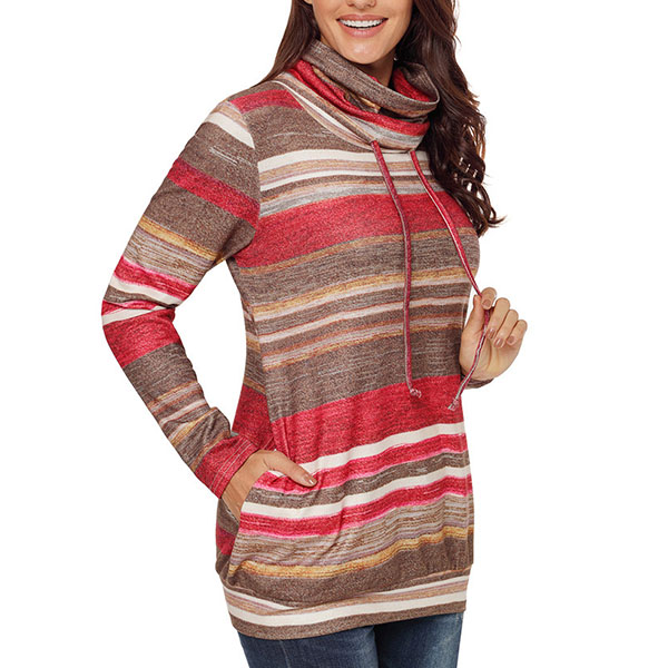 Designed with colorful striped element,stylish yet popular,while the cowl neck design will make