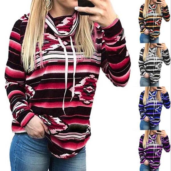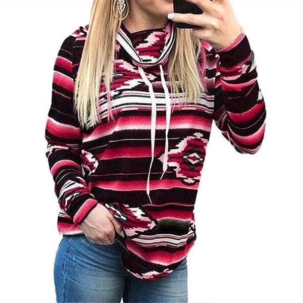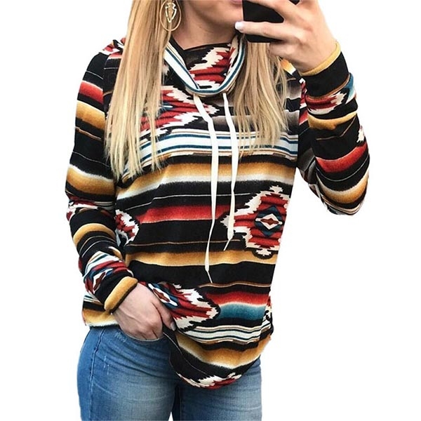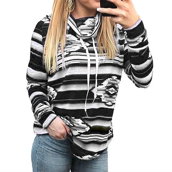 printed pattern,the cowl neck with drawstring design makes this piece look so chic and distinctive.