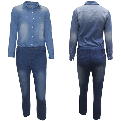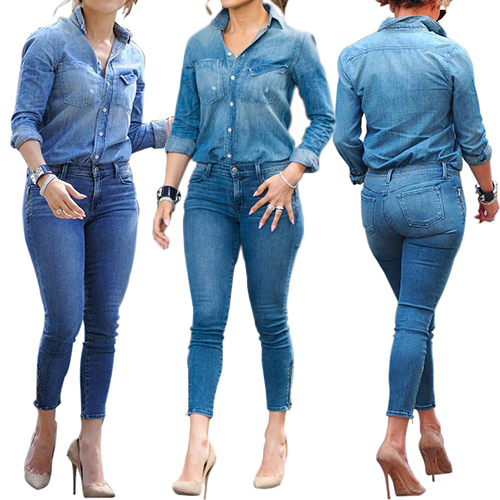 Including a long sleeve denim shirts and a high waist skinny jeans,this two-piece set can lend you a laid-back