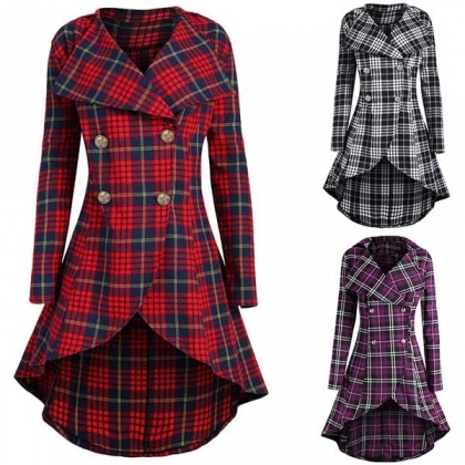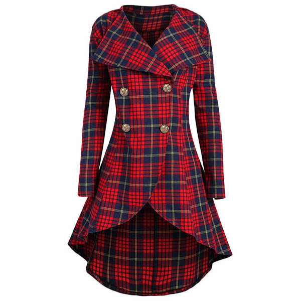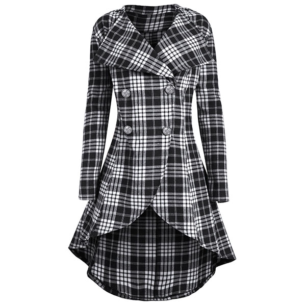 long sleeve,double-breasted and a high-low hem,chic and unique. You can trust in this dress to give