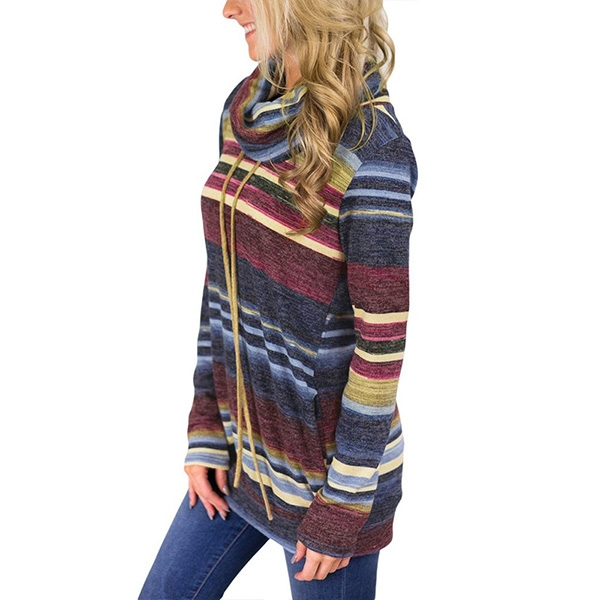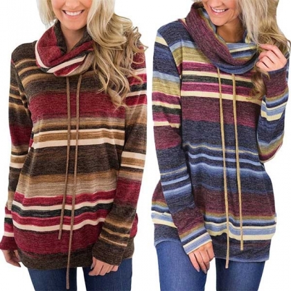 element,the cowl neck with drawstring design makes this piece look so chic and attractive.