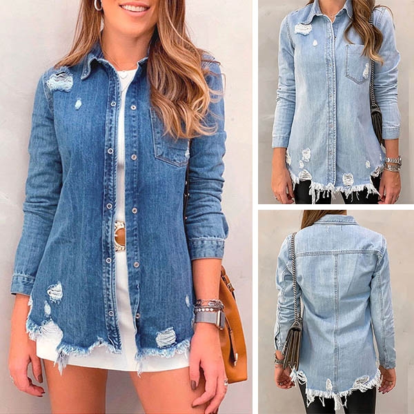 design maintain the classic design style,while the frayed hem and ripped details make this piece look more