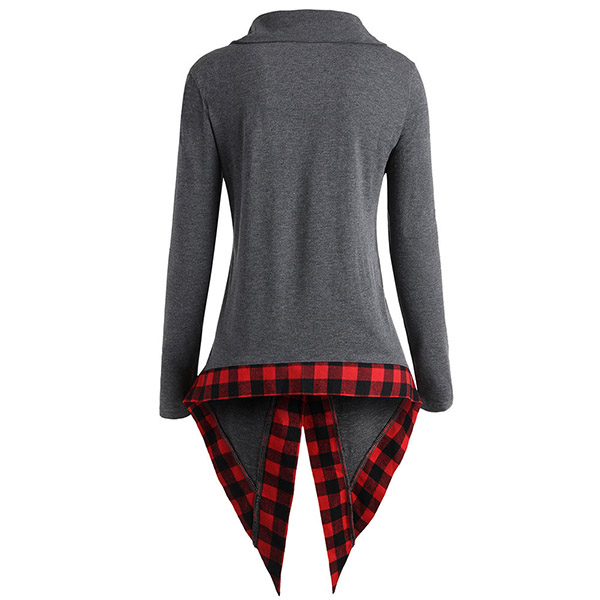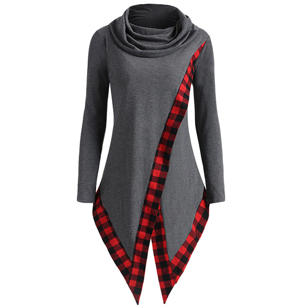 enriches the design style,while the heaps collar and irregular hem design make this piece look more distinctive.