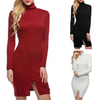 with long sleeve,high collar and a fit silhouette,this dress can display your slender figure.