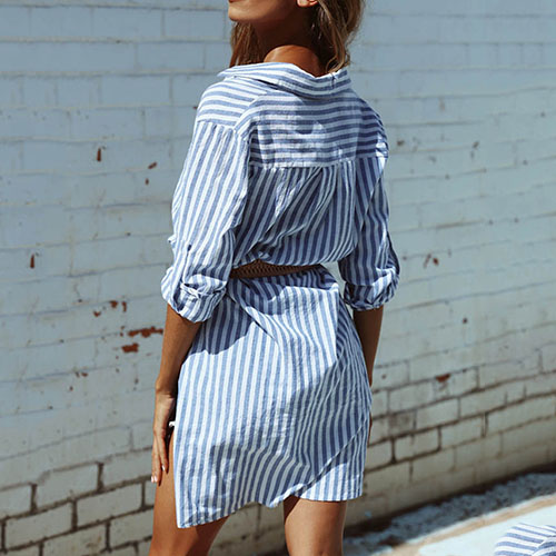 Looking for a dress that is versatile for both work or weekends? Then opt for this shirt dress! Striped style,